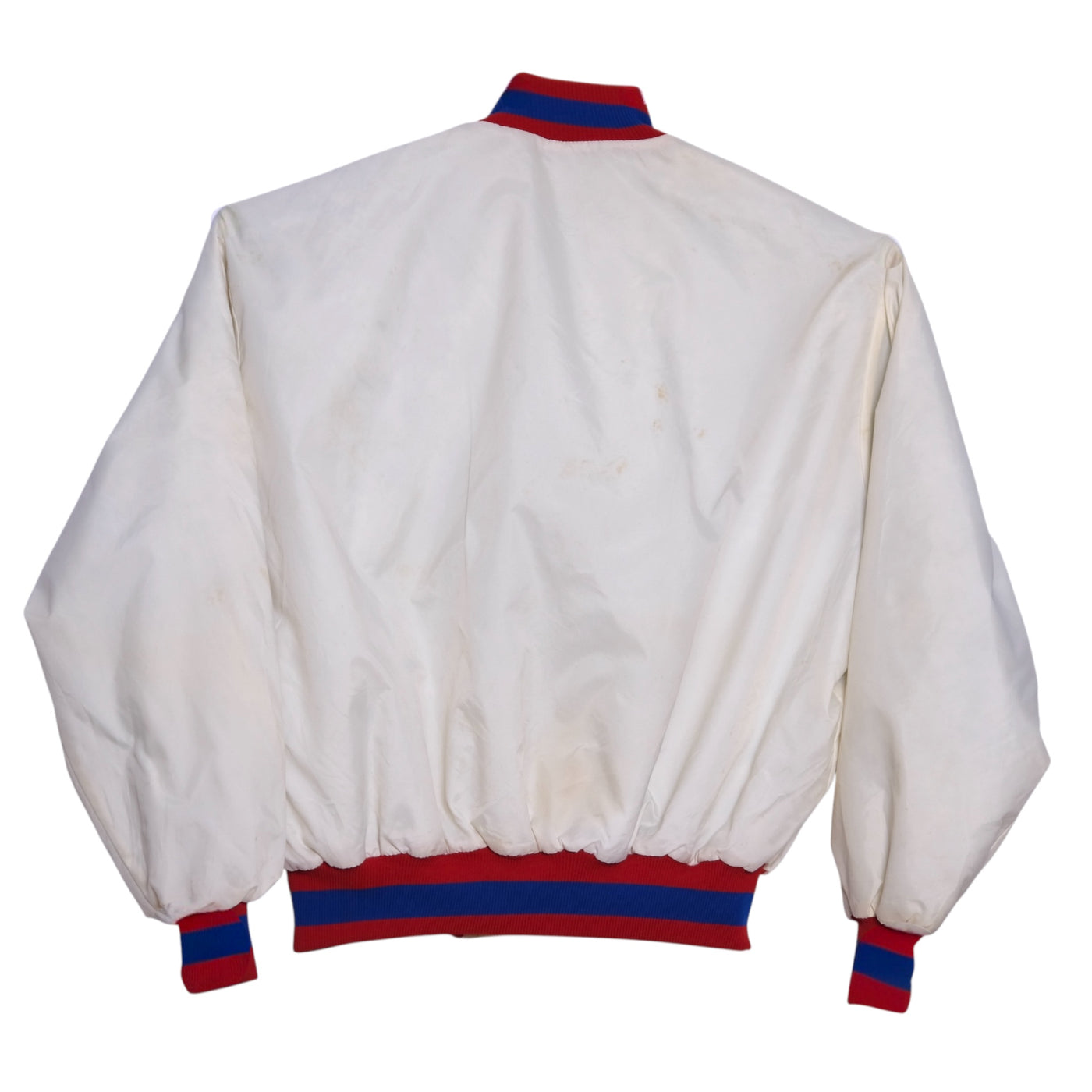 DESCRIPTION: Clean vintage American Legion baseball jacket with that classic satin/nylon shine and red + blue rib trim. The embroidery is the star “Commander Charlie Allen 1988–89” on one side and “American Legion Baseball Post 201” on the other so it feels like a real piece of history, not a replica. Easy throw-on, sporty, and instantly makes a basic outfit look styled.